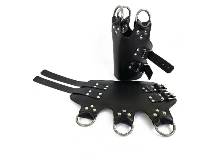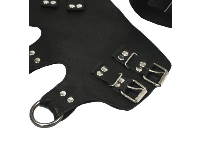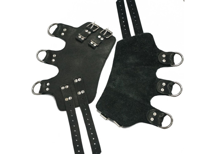 Пані виконані з високоякісної натуральної шкіри, посилені двома рядами кобурних гвинтів. Три кільця на кожному манжеті призначені для зручної та надійної фіксації. Поножі виконані вручну. За належного використання легко витримують велику вагу.