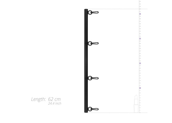 Фіксатор являє собою три труби, які можна комбінувати між собою. За довжиною труби є чотири кільця з фіксаторами-карабінами, на які треба прикріпити наручники та поножі. Ви можете з легкістю зафіксувати вашого партнера в найвишуканішій позі — варто тільки застосувати трохи фантазії та винахідливості. На карабіни фіксатора можна кріпити інші аксесуари для бондажу.