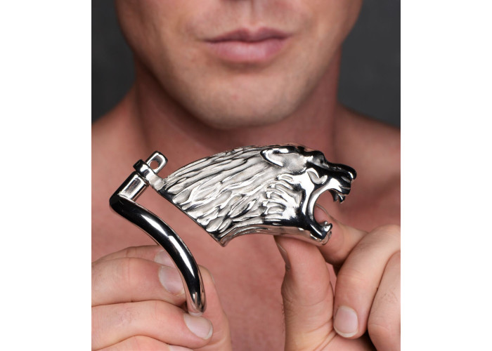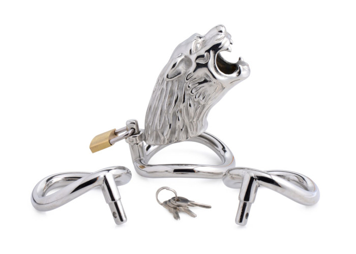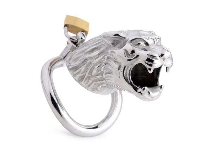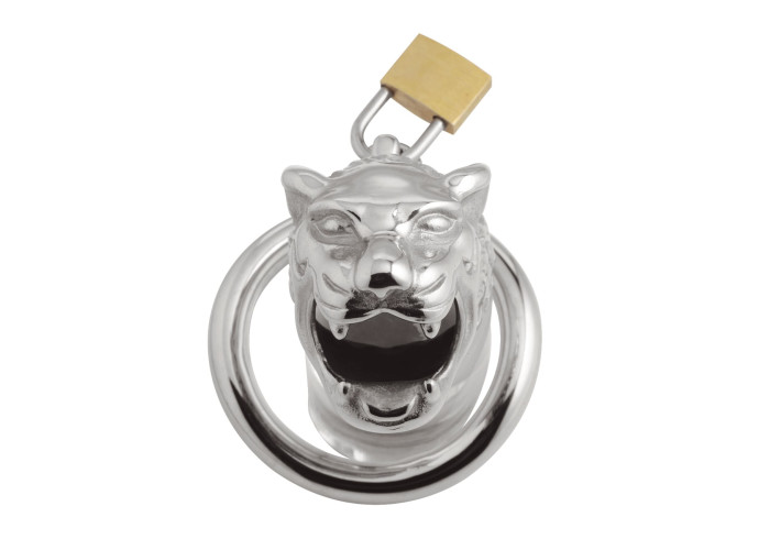 Клітка виготовлена з гладенької, міцної нержавійної сталі у формі голови тигра, що широко розкрив пащу. У наборі є три кільця різного діаметра для правильного вибору розміру. Усе, що вам потрібно — надягти кільце на мошонку і вставити неерегований пеніс всередину клітки-тигра. Тепер можна зачинити конструкцію на маленький замочок. Так-так, ваша клітка цнотливості — це не просто гра, а доказ вірності та прийняття цього покарання від Пані. Отвір у вигляді відкритої пащі тигра дає змогу безперешкодно сходити в туалет, але ерекція для вас тепер стане недосяжною розкішшю. У крихітного замочка є лише три маленькі ключики. Віддайте їх своїй партнерці — й очікування наступної зустрічі буде палити зсередини, наче вогнем. Залишіть ключик собі та перевірте свою силу волі: скільки вам знадобиться часу, щоб утриматися від солодкого вивільнення?