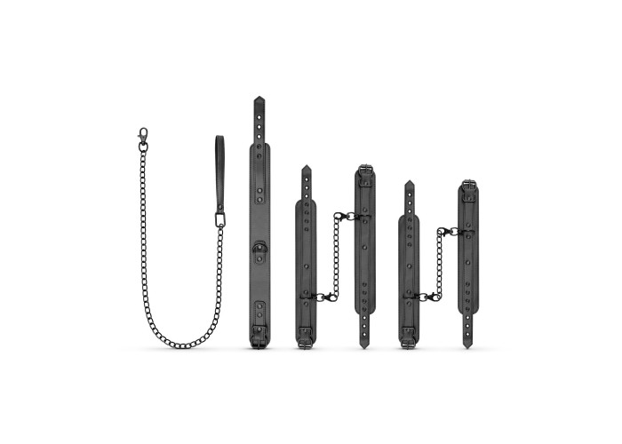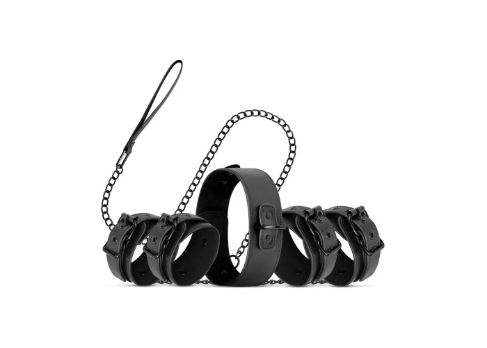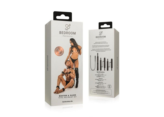 Любителям підкорятися і тим, хто воліє домінувати, рекомендуємо купити набір для BDSM Bedroom Fantasies: Master & Slave Total Restraint Set. Виконані з м’якої штучної шкіри, аксесуари не натирають і не пошкоджують шкіру, але водночас надійно фіксують партнера. Металева фурнітура чорного кольору має стильний та вишуканий вигляд на оголеному тілі.