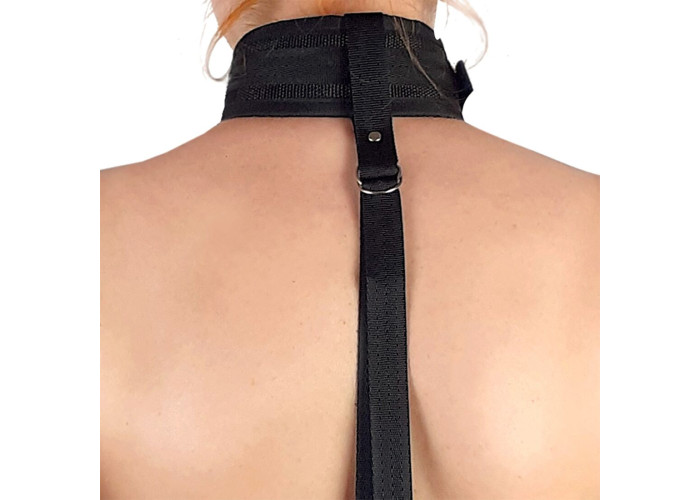 Рекомендуємо купити простий, але дуже сексуальний пристрій — набір для фіксації BDSM Art of Sex — Collar and Handcuffs. Це широкий нашийник, від якого вниз вздовж спини (або живота — залежно від того, як ви його одягнете) тягнеться ремінь. На кінці ременя — кільце з двома широкими наручниками. Зафіксувавши аксесуар на шиї та руках, ви частково знерухомлюєте партнера, позбавляючи його можливості прийняти зручну позу, а також обіймати вас або допомагати собі руками.