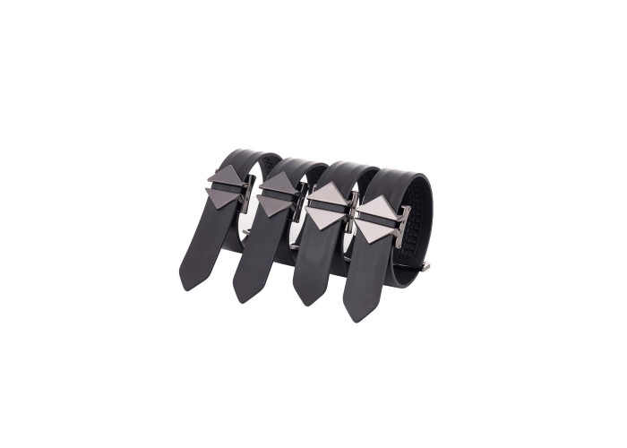 Усі металеві кріплення виготовлені з цинкового сплаву, який не іржавіє та має глянсове покриття. Це забезпечує легке ковзання металу по шкірі без подразнень або дискомфорту.
