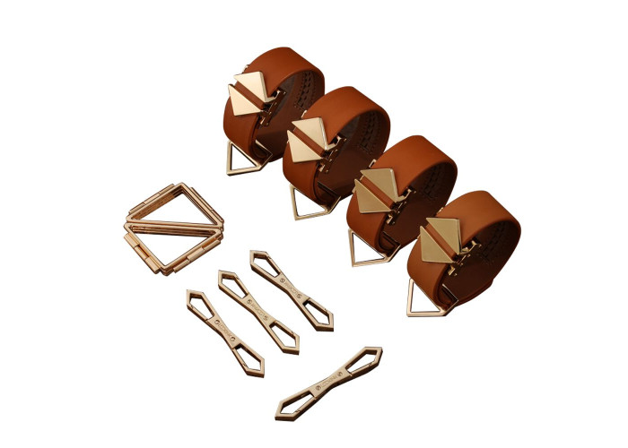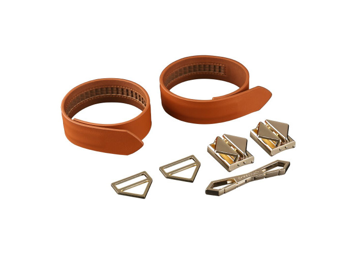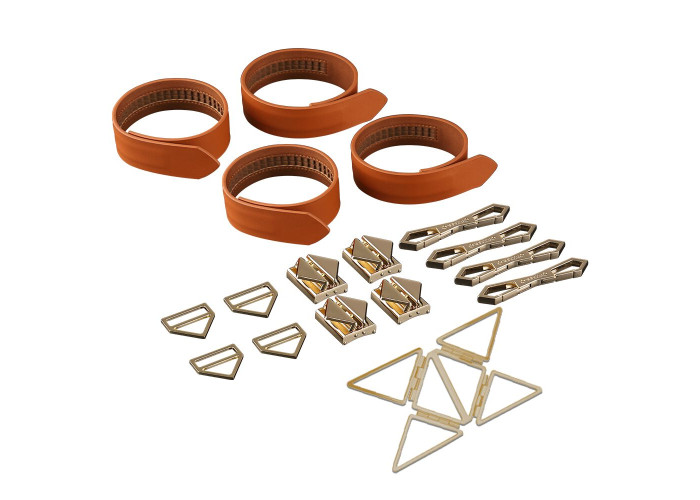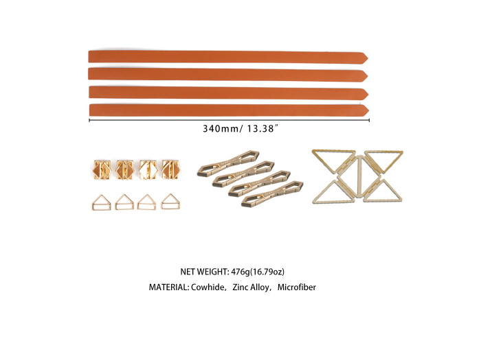 Усі металеві кріплення виготовлені з цинкового сплаву, який не іржавіє та має глянсове покриття. Це забезпечує легке ковзання металу по шкірі без подразнень або дискомфорту.