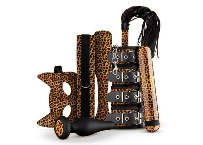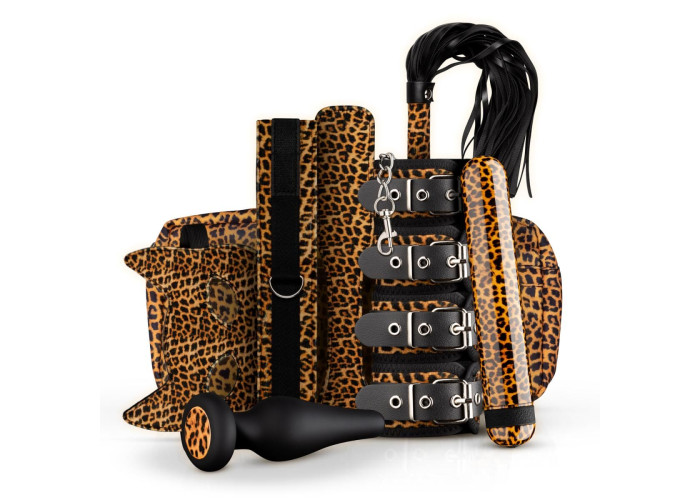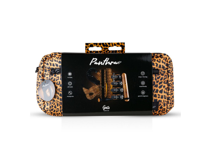 Набір BDSM аксесуарів Panthra Gato 8-piece set упакований у стильну сумочку-косметичку, яка, як і вся колекція, прикрашена леопардовим принтом.