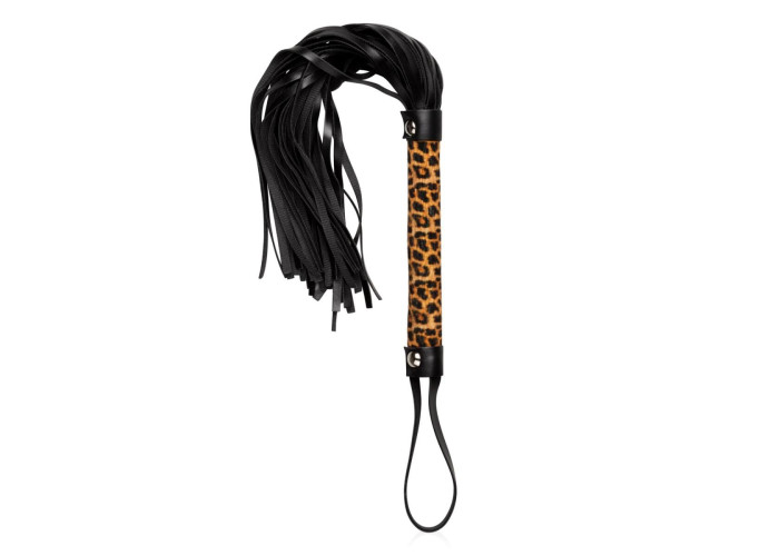 Флоггер з жорстким руків'ям і хвостиками з м'якої еко-шкіри, підійде для м'якого або середнього впливу. Рукоять прикрашена плюшем із леопардовим принтом і оснащена петлею, яка дозволяє міцно тримати флоггер у руці. Такий флоггер, дозволяє перейти від ніжних і чуттєвих погладжувань, до досить відчутних ударів кінчиками хвостиків.