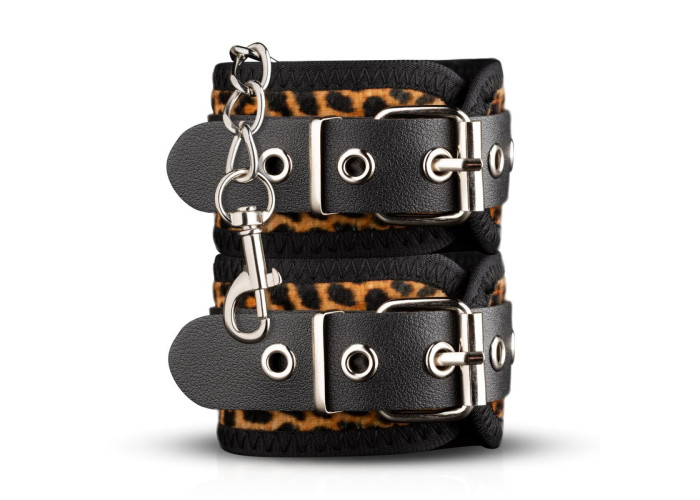 М'які наручники виготовлені з ніжного плюшу та якісної еко-шкіри, з акуратно обробленими швами і прикрашені металевими заклепками. З'єднання за допомогою ланцюжка і карабінів, дозволяє роз'єднати їх і використовувати просто як прикрасу. Наручники щільно огинають зап'ястя та щиколотки, не доставляють дискомфорту і не залишають слідів на шкірі. Застібка у вигляді пряжки і 6 отворів на ремінці, дозволяють досягти ідеальної посадки. Відмінний варіант для новачків і ніжного BDSM.