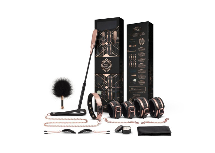 Один тільки зовнішній вигляд цього вишуканого набору здатен пробудити хвилювальні думки про п’ятдесят відтінків чуттєвого і пристрасного інтиму. Рекомендуємо купити шикарний набір для BDSM Rosy Gold – Nouveau BDSM set, у якому ви знайдете все необхідне для повного занурення в солодкий світ задоволень.