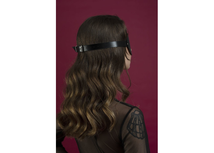 Маска красива, гладка і м'яка. Анатомічна форма повторює форму обличчя, забезпечуючи щільне прилягання і не пропускаючи світло. Виготовлена з високоякісної шкіри рослинного дублення та доповнена стильною фурнітурою сріблястого кольору.