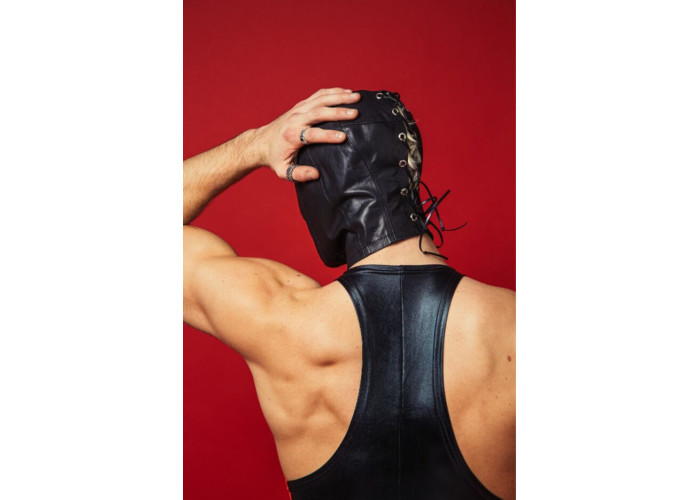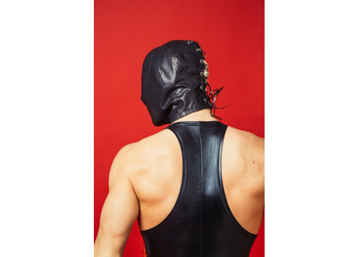 Капюшон виконаний з м’якої натуральної шкіри, він повністю закриває обличчя, голову та частково шию. Пошитий капюшон у такий спосіб, щоб точно лягати на вигини обличчя. Позаду капюшона є розріз із люверсами по обидві сторони. Шкіряним шнурком можна регулювати розмір.