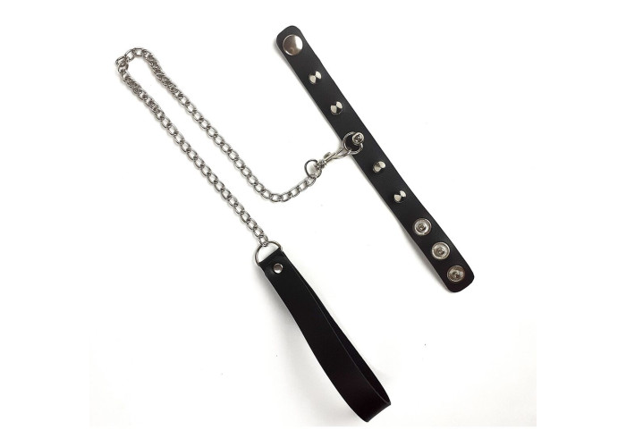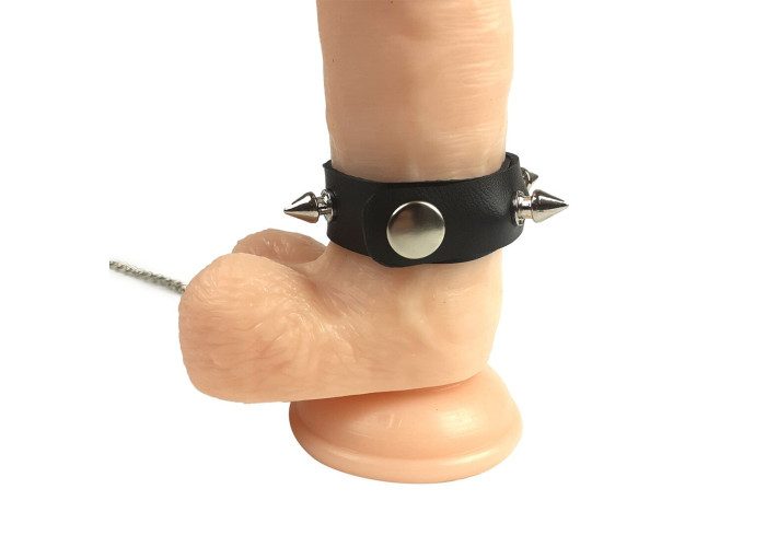 Кільце для пеніса прикрашено шипами, це кільце не дасть можливість нікому торкатися до вашої власності. Поводок з металу оснащений шкіряною ручкою, щоб регулярно вигулювати партнера по дому було зручно, в першу чергу, для вас.