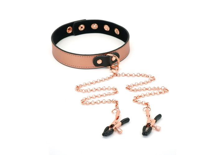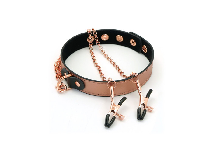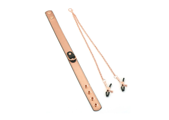 Поєднання стилю та функціональності — те, що потрібно для ідеального БДСМ-девайса! Нашийник із затискачами для сосків Liebe Seele Rose Gold Memory Collar with Nipple Clamps відповідає найсуворішим вимогам!