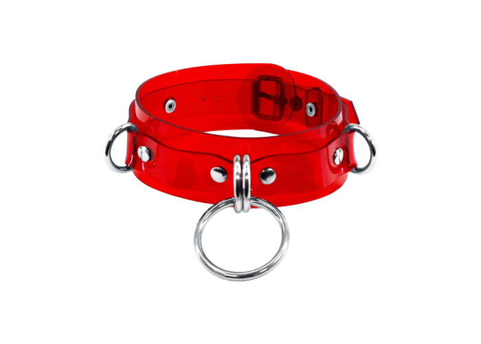 Представляємо вашій увазі прозорий чокер Feral Fillings в червоному кольорі — ідеальний вибір для використання в ролі стильного нашийника. Цей унікальний аксесуар виконаний з інноваційного ПВХ-матеріалу без фталатів, який не тільки безпечний для шкіри, але й має блиск, що нагадує лаковану шкіру або латекс. Матеріал легко очищається, стійкий до води та приємний на дотик. Дизайн чокера поєднує в собі широкий подвійний ремінь, що елегантно обрамляє шию, і надійно закріплене металеве кільце, що ідеально підходить для кріплення повідця. Такий аксесуар стане чудовим доповненням до вашої БДСМ-колекції. Чокер-нашийник оснащений двома D-подібними кільцями для фіксації наручників або інших БДСМ-аксесуарів. Він має елегантний вигляд на жіночій шиї, підкреслюючи витонченість та сміливість образу. Виготовлений із якісного матеріалу з фурнітурою сріблястого кольору, що додає виробу особливого шарму. Чокер кріпиться за допомогою пряжки ззаду та легко регулюється за обсягом шиї, завдяки чому підходить практично всім. Ширина нашийника становить 4 см, забезпечуючи комфортне та естетично приємне носіння.