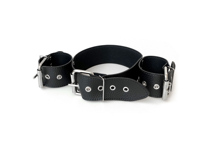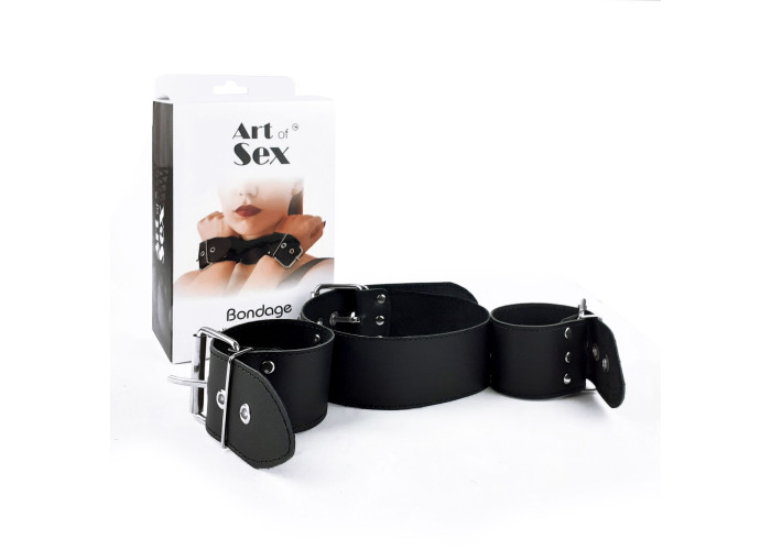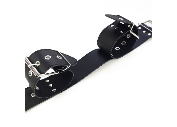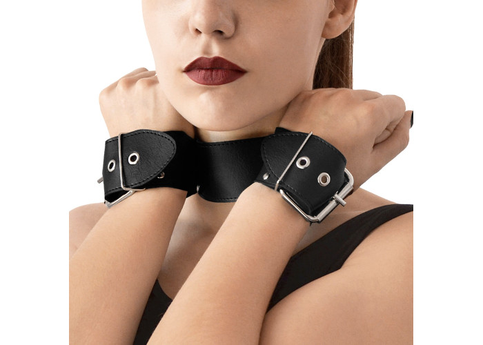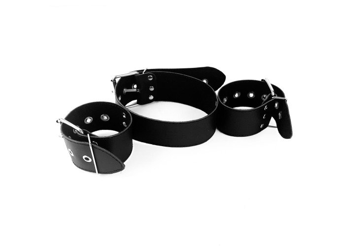 Бондажний набір Bondage Collar with Handcuffs, натуральна шкіра – нашийник з наручниками ручної роботи із натуральної шкіри. Головне тут – не бездоганна якість виробу і навіть не наднадійна фіксація. Основна особливість цієї моделі – незвичайний дизайн. Наручники міцно з'єднані з нашийником, таким чином, що руки залишаються зігнутими в ліктях і притиснутими до шиї. Ця модель створена, щоб ви могли експериментувати так сміливо, як самі того забажаєте.