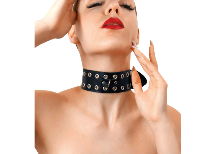 Шкіряний нашийник Art of Sex - Tessa з металевими заклепками та можливістю прикріпити будь який повідець, на Ваш смак. Нашийник комфортний і легко регулюється по об’єму шиї. Аксесуар дозволить Вам насолодитися БДСМ практиками в повній мірі, а також втілити у життя найгарячіші рольові ігри з елементами домінування та підкорення.