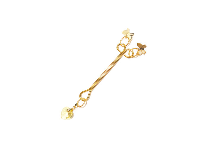 Затискач для клітора Art of Sex - Clit Clamp Butterfly – це елегантний інтимний аксесуар, який поєднує в собі розкішний дизайн та високу функціональність. Виготовлений із металу з покриттям золотого відтінку, цей затискач не тільки має вишуканий вигляд, але і є стійким до корозії та гіпоалергенним для безпечного використання на тілі. Затискач прикрашений підвіскою у формі серця, що робить його дизайн більш ніжним та вишуканим.