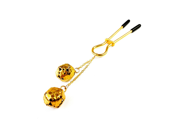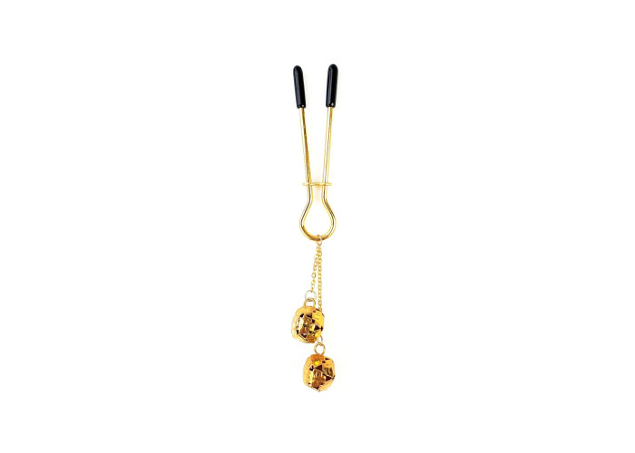 Затискач для клітора з бубонцями Art of Sex — Beverly clit clamp, Золото — стильний і лаконічний кліторальний затискач у золотому кольорі. Затискач прикрашений металевими дзвіночками, які грайливо дзвенітимуть у такт із рухами тіла. Затискач для клітора стане в пригоді любителям гострих відчуттів та експериментів з яскравою стимуляцією. Оснащений силіконовими насадками для комфортного використання та регулятором, щоб вибрати необхідну силу стиснення.