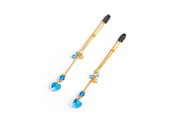 Рекомендуємо купити затискачі для сосків Art of Sex – Crystal Heart Blue, створені, щоб подарувати незабутні відчуття від стимуляції грудей. Простий і оригінальний дизайн затискачів зробить ваші груди ще привабливішими, але не перетягне всю увагу на себе, а лише додасть сексуальності вашому образу. Золотий колір металу та блакитні грановані намистини-сердечка ідеально поєднуються один з одним.