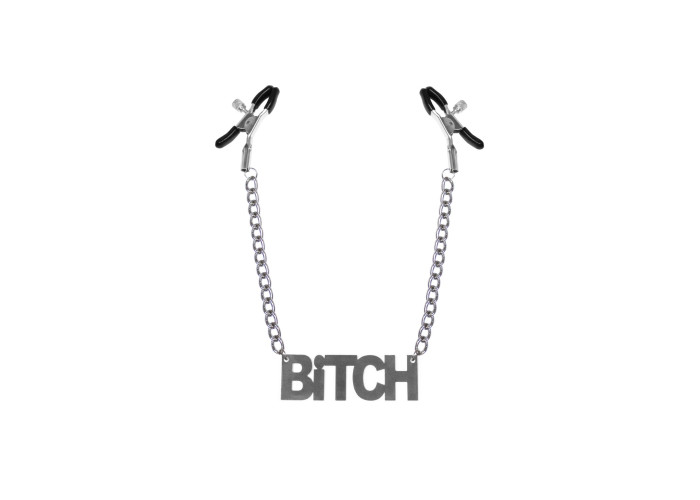 Прийшов час для солодких покарань! Пропонуємо придбати затискачі для сосків Bitch, Feral Feelings - Nipple clamps Bitch, срібло/чорний для найзухваліших! Ланцюжок із сміливим підвісом плюс гвинтовий затискач для регулювання рівня стиснення надихнуть вас на найцікавіші ігри!