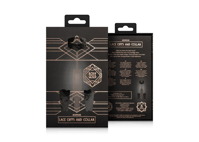 Комплект Rosy Gold — Lace Cuffs and Collar створений для сенсорного задоволення. Спробуйте доповнити його легкою маскою на очі або м'яким пір'ям для лоскоту, щоб загострити відчуття партнерки.