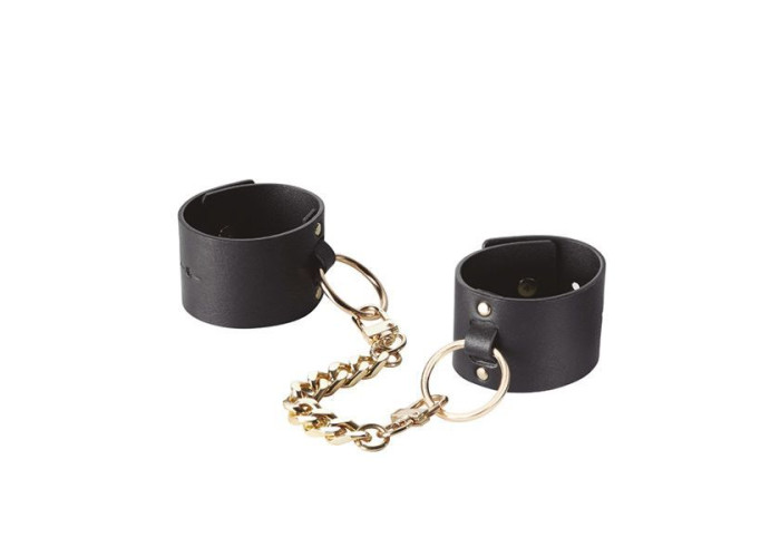 Наручники виглядають дуже дорого та презентабельно, виготовлені з якісних матеріалів та стилізовані під шкіру. Класичний чорний колір ефектно контрастує із золотистим ланцюжком. Регулюються за обсягом, сама манжета досить м'яка і не натиратиме. Такі кайданки – ідеальний варіант романтичного подарунка з натяком на подальший експеримент.