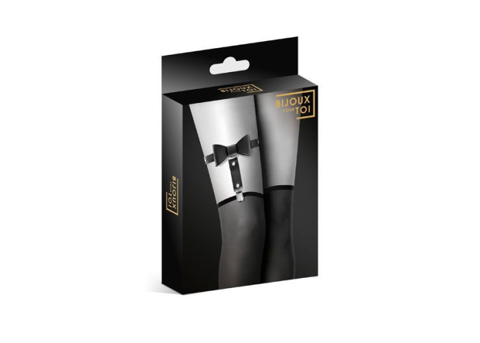 Маєте бажання створити сексуальний образ дівчини-спокусниці або доповнити особливий наряд? Тоді рекомендуємо купити гартер Bijoux Pour Toi - WITH BOW Black - лаконічний і при цьому сексуальний, зі стилізованим під шкіру чорним бантиком із заклепками.
