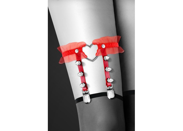 Бездоганний варіант сексуальної підв'язки для прихильниць поєднувати жорсткість і ніжність! Пропонуємо купити гартер Bijoux Pour Toi - WITH HEART AND SPIKES Red: шипи, метал і оборки в ньому ідеально доповнюють один одного. Подвійна підв'язка - це справжній еротик-шик для незабутнього образу.