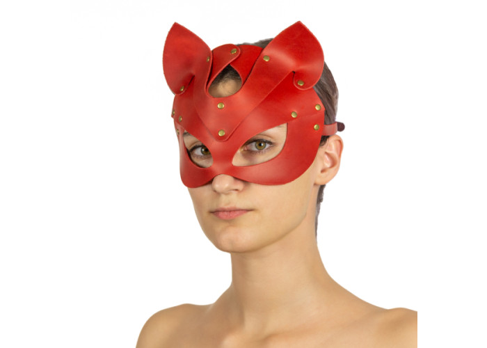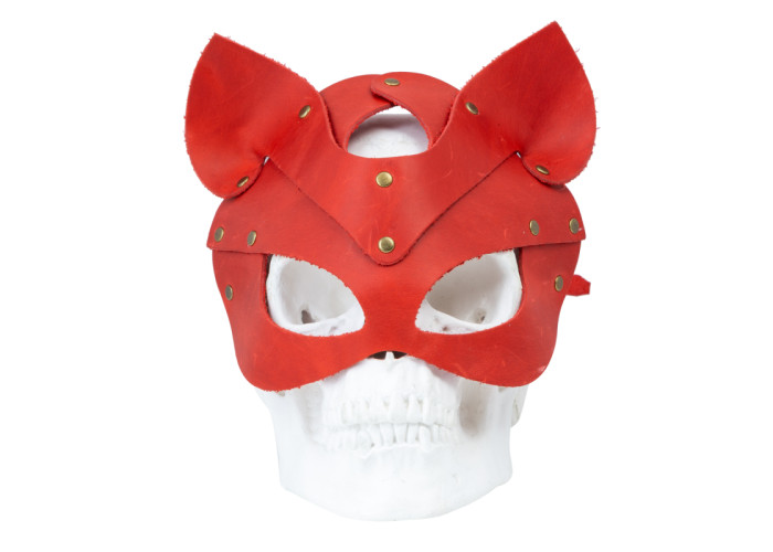 Червона маска кішки LOVECRAFT з натуральної шкіри: