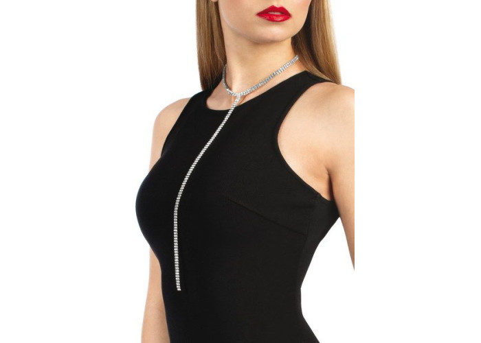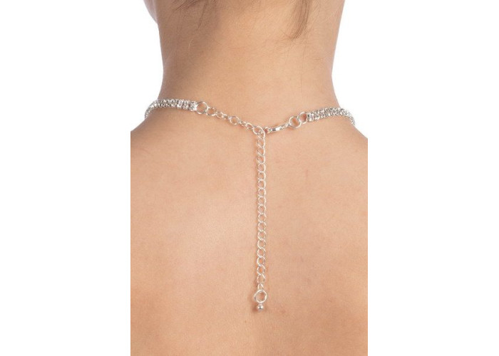 Розкішне кольє зі стразами, що спускається на груди, стане відмінним доповненням до плаття, білизни або будь-якого іншого наряду. Стрази розташовані по всій довжині кольє, завдяки чому воно виглядає особливо ошатно.