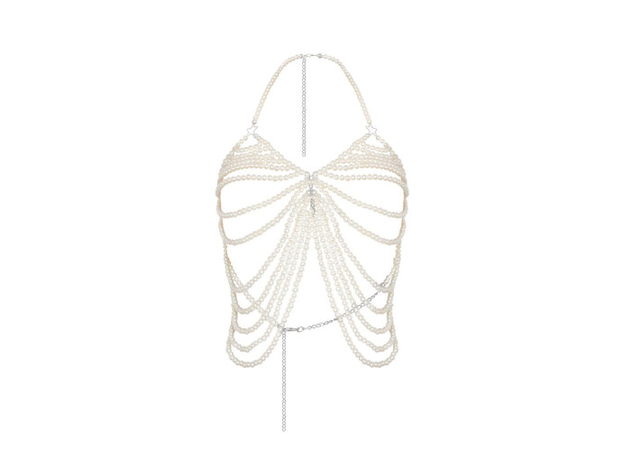 Намисто із штучних перлин Art of Sex - Star - вишуканий і спокусливий аксесуар, який додасть образу витонченості та розкоші. Ніжні перлинні нитки елегантно облягають тіло, створюючи неповторний ефект. Намисто має унікальний дизайн, завдяки чому нагадує топ. Завдяки цьому, його легко можна комбінувати з боді, комплектами нижньої білизни чи рольовими костюмами. Також це намисто може стати сміливим акцентом у вечірньому вбранні. Універсальний і елегантний, цей аксесуар підкреслить вашу жіночність і додасть образу нотку ніжності та загадковості.