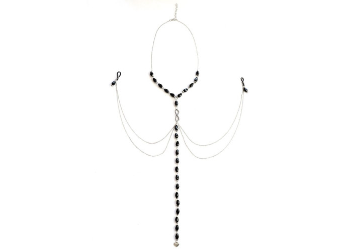 Незвичайна інтимна прикраса Art of Sex - Night mood, що поєднує в собі розкішну красу кристалів і витонченість тонких металевих ланцюжків. Прикраса кріпиться на сосках за допомогою силіконових петельок, тим самим унеможливлюючи будь-який дискомфорт і травматизм ніжної зони. Ця прикраса для сосків стане прекрасним доповненням до відвертих комплектів спідньої білизни, рольових костюмів або витончених суконь з глибоким декольте.
