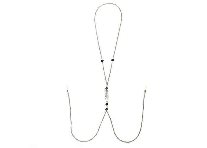 Спокуслива прикраса для сосків покликана притягувати погляд до плавних ліній жіночої шиї, ключиці та грудей. Металева прикраса обрамляє шию, спускаючись на груди та кріплячись на сосках за допомогою силіконових фіксаторів. Декоративні намистини та підвіска – стріла додають прикрасі шарму, роблячи її основним акцентом на жіночому тілі.