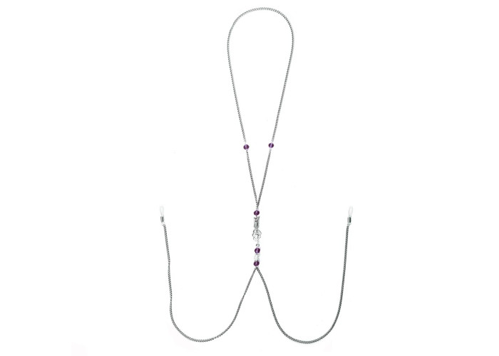 Спокуслива прикраса для сосків покликана притягувати погляд до плавних ліній жіночої шиї, ключиці та грудей. Металева прикраса обрамляє шию, спускаючись на груди та кріплячись на сосках за допомогою силіконових фіксаторів. Декоративні намистини та підвіска – стріла додають прикрасі шарму, роблячи її основним акцентом на жіночому тілі.