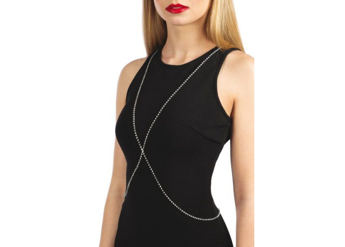 За допомогою прикрас жінка розповідає свою історію та відкриває частину своєї особистості. Розкажіть вашу історію, купіть сріблястий ланцюжок для бюста Bijoux Pour Toi – Elena Silver. Елегантний аксесуар із ювелірного сплаву та розсипом страз складається з двох тонких ланцюжків, які починаються на шиї, перехрещуються під грудьми та закінчуються внизу спини.