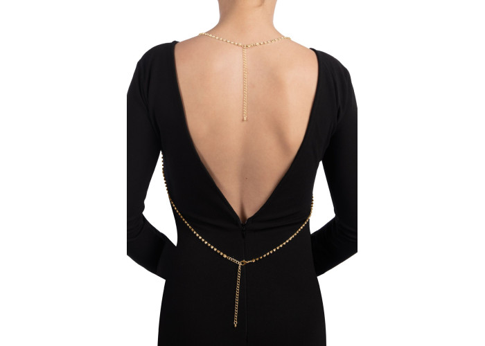 За допомогою прикрас жінка розповідає свою історію та відкриває частину своєї особистості. Розкажіть вашу історію, купіть золотистий ланцюжок для бюста Bijoux Pour Toi – Elena Gold. Елегантний аксесуар із ювелірного сплаву та розсипом страз складається з двох тонких ланцюжків, які починаються на шиї, перехрещуються під грудьми та закінчуються внизу спини.