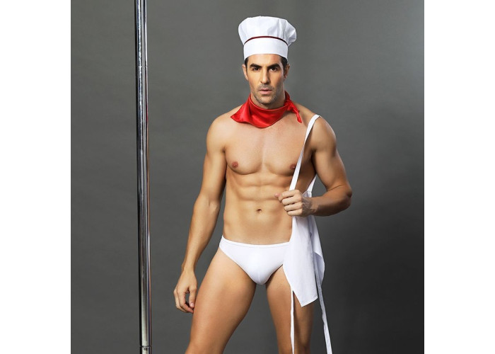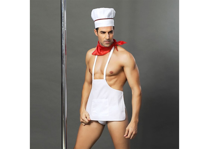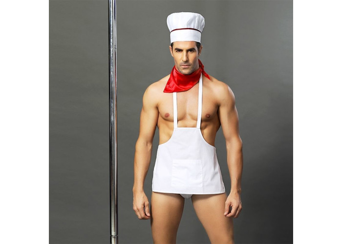 Білосніжний фартух, акуратні сліпи, стильна шийна хустка і, звичайно, кухарський ковпак створять образ сильного і сексуального кухаря. Фартух лише злегка прикриває стегна, підкреслюючи торс, червона хустка відсилає до високої французької кухні, а ковпак свідчить про вашу майстерність. Спробуйте зустріти кохану в такому образі, і ви точно помітите захоплення в її очах. Ви можете принести їй "блюдо від шефа" або влаштувати рольові ігри - все залежить тільки від вашої фантазії.