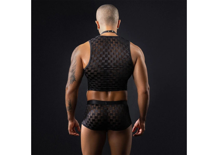 топ та труси-шорти з напівпрозорого матеріалу з шаховим малюнком;