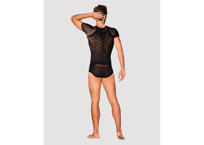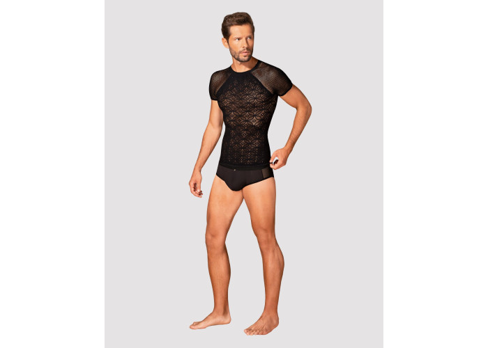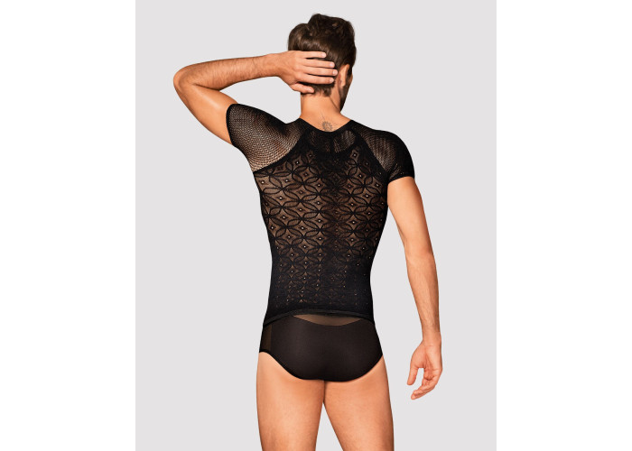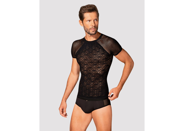 Пропонуємо купити чоловічу напівпрозору футболку з орнаментом Obsessive T102 T-shirt — універсальний предмет одягу, який можна одягати щодня та прийти на побачення з продовженням. Ця цікава футболка для впевненого в собі чоловіка, комфорт і сексуальність для якого не порожні слова.
