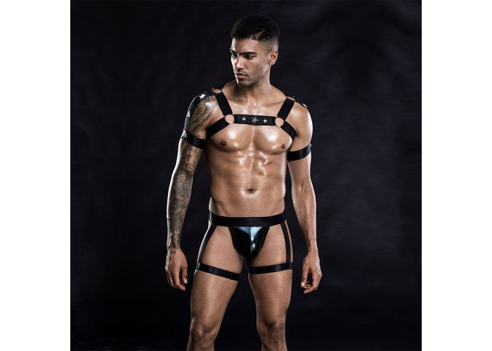 Еротичний комплект для чоловіків труси+портупея підійде і для виступів, і для індивідуальної програми.