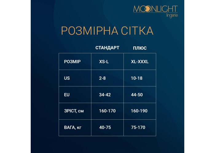 Розмір XS-L: підійде на розміри від 34 до 42, зріст від 160 до 170 см, вагу від 40 до 75 кг.