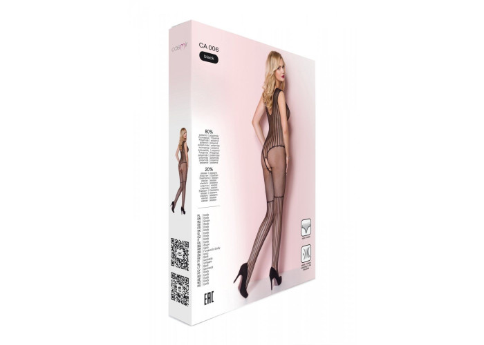 Невинність і розпуста – суперечливе поєднання, яке заведе вашого чоловіка, коли ви купите та приміряєте сітчастий чорний бодістокінг з малюнком боді та гетр Casmir CA006. Малюнок комбінезону, що складається з вертикальних ліній, допоможе створити граціозний силует.
