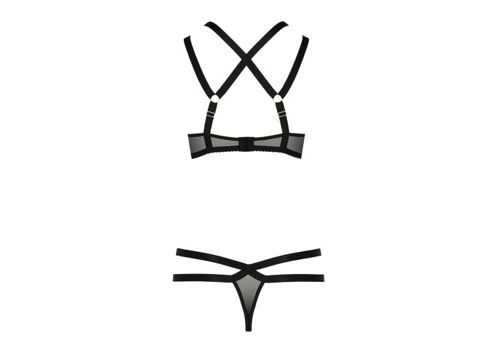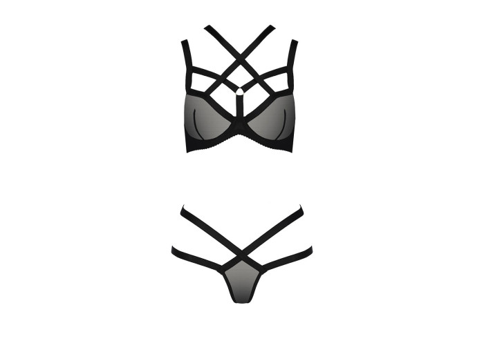Комплект від Passion виконаний із прозорої та сексуальної сітчастої тканини, яка надає вам загадкового вигляду, а вашій шкірі дає змогу дихати. Стреп-деталі додають комплекту зухвалості та оригінальності. Ці прикраси підкреслюють ваші форми та створюють вишуканий образ. Бюстгальтер чудово підтримує груди: м’які чашки посилені кісточками, регульовані бретелі та багатоступенева застібка ззаду. Стрепи ліфа будуть виглядати з-під блузки й доповнюватимуть образ, роблячи його сучасним і модним. Стрінги прикривають зону бікіні прозорою сітчастою тканиною, а дві резинки-ремінці дарують ідеальну посадку.
