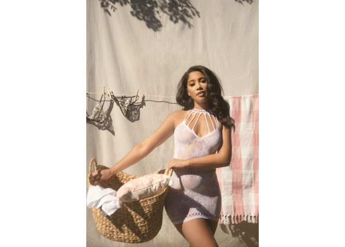 Якщо ви хочете справити незабутнє враження, рекомендуємо купити ажурну сукню-сітку Leg Avenue Lace mini dress with cut-outs з розкішними вирізами та квітковим принтом. Його дизайн підкреслює талію, підіймає бюст і шикарно відкриває спину. Підійде і для солодких побачень, і для гарячої вечірки біля басейну, як накидка на купальник.