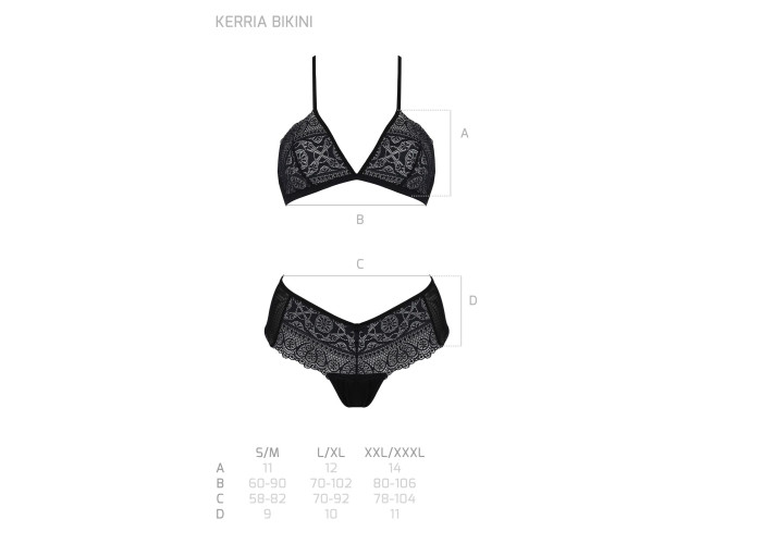 Мереживо та лаконічний фасон — рецепт до приваблення з першого погляду. У цьому можна переконатися, якщо купити комплект Passion KERRIA BIKINI, що складається з комбінованого бюстгальтера-бралета та трусиків-бікіні зі швом ззаду.