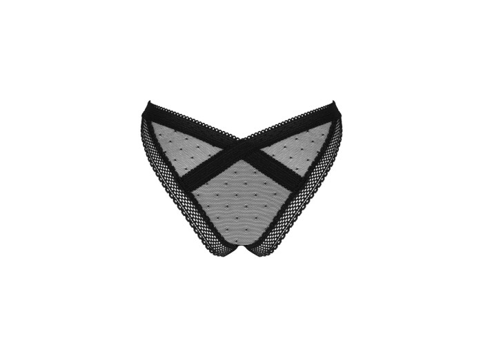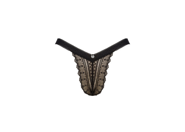 Мереживні трусики із заниженою талією Obsessive Estiqua panties виконані з м’якого матеріалу з мереживним малюнком. Еластична, приємна до тіла резинка трусиків не передавлює і не натирає ніжну шкіру. Трусики скроєні та пошиті таким чином, щоб підкреслити всі спокусливі вигини та заворожити недомовленістю. Стрункі ніжки і прикриті сідниці, приваблива і приваблива западинка пупка — ці трусики створені, щоб спокушати і дражнити, спалахувати і спопеляти в важкій еротичній грі. Прикраса на трусиках у вигляді медальйончика з фірмовим логотипом — як натяк на шлях до головного коштовності цього вечора.