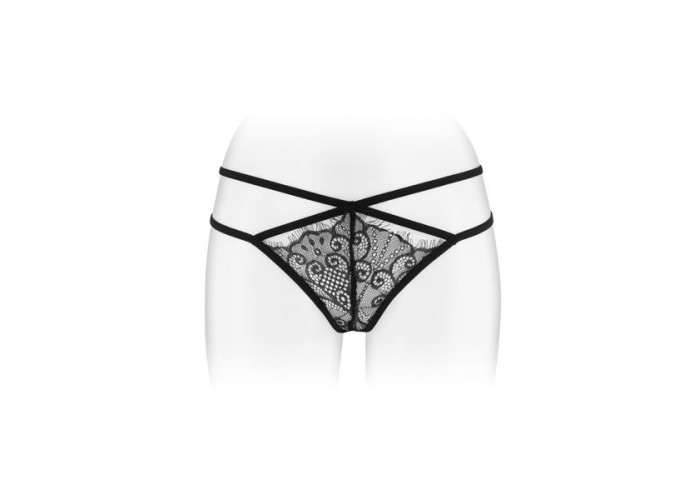 Такі трусики можна надіти на побачення, а можна просто носити кожен день: вони досить комфортні, мереживо м'яке, а дизайн дозволяє надягати їх практично під будь-який одяг, до того ж плоскі гумки не передавлюють тіло. Зверніть увагу на шикарний вид ззаду! Гумки підкреслюють округлості і красиво переплітаються між собою, утворюючи спокусливий малюнок. Мереживні трикутнички напівпрозорі і виглядають приголомшливо сексуально. Трусики випускаються в одному розмірі. Виконано з поліаміду (95%) з додаванням еластану (5%).