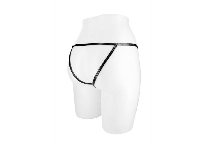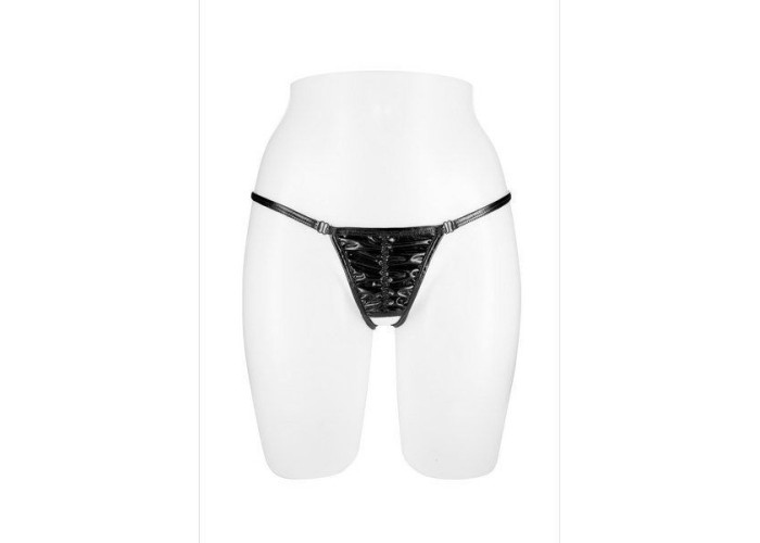 Незвичайні трусики з плоскими ремінцями не будуть залишати слідів на тілі. Крім того, ефект мокрої тканини виглядає на тілі особливо спокусливо. Виконано в класичному чорному кольорі.