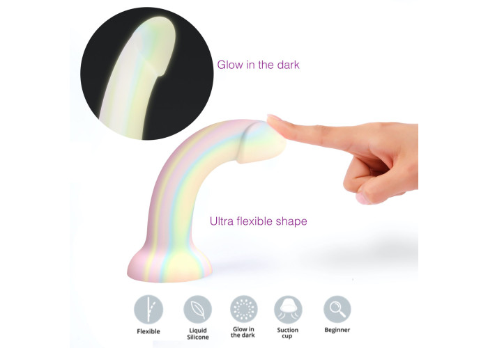 Магія вже тут! Подаруй собі чарівну нічну пригоду — для цього потрібно тільки купити дилдо, що світиться в темряві Love To Love DILDOLLS - FANTASIA. Пастельний райдужний колір, ніжний пружний матеріал, правильний нахил для стимуляції точок G і P — він просто ідеальний! Оснащений надійною присоскою і, головне, світиться у темряві кожним своїм кольором. Підходить і для вагінального, і анального використання.