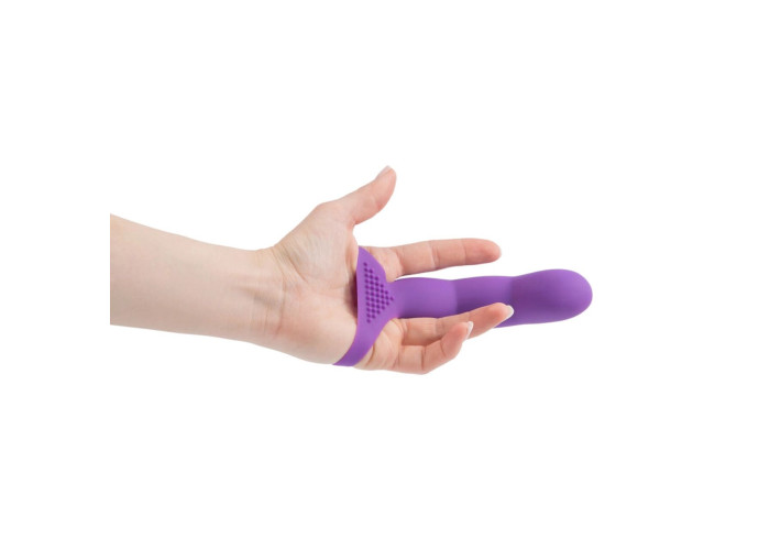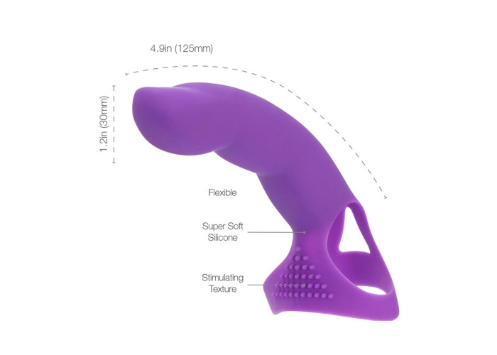 Еластична насадка на палець Simple&True Extra Touch Finger Dong Purple, добре тягнеться та надійно кріпиться на середині долоні, залишаючись на місці навіть під час найспекотніших ігор. Гнучка конструкція девайса точно повторює всі вигини пальця, а верхня фаланга, що нагадує голівку члена, підходить для стимуляції всіх найчутливіших внутрішніх точок. Стимулюючий рельєф на основі ніжно впливає на клітор під час вагінального проникнення. Насадка стане чудовим помічником, якщо треба додати трохи глибини під час мануальної стимуляції.