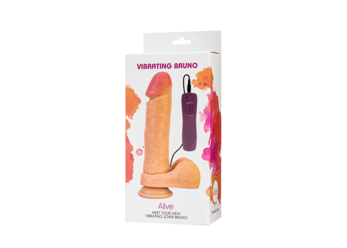 Пропонуємо придбати фалоімітатор на присосці Alive Bruno. Ця модель може похвалитися середніми розмірами (загальна довжина 22 см, довжина, яка вводиться 16 см, максимальний діаметр 4,3 см) і високою реалістичністю. Велика щільна мошонка з безліччю складок, стовбур, вкритий горбистими вінками, яскраво виражена рожева голівка - все це забезпечить максимально яскраві відчуття від використання. Вас приємно здивує його потужний моторчик з 10 режимами вібрації. Він знаходиться посередині стовбура, завдяки чому вібрація рівномірно поширюється по всій довжині. Виготовляється фалоімітатор на присосці з м'якого і в той же час гнучкого PVC-матеріалу.