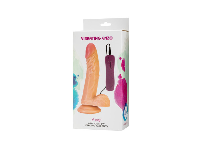 У нас ви можете придбати реалістичний фалоімітатор Alive Enzo. Він порадує вас середніми розмірами (загальна довжина 21 см, довжина, яка вводиться 15,5 см, максимальний діаметр 4,3 см) і ергономічною формою. Ця модель ідентична справжньому члену: злегка зігнутий стовбур, яскраво виражена рожева голівка, безліч складок і горбисті вінки. Для виготовлення фалоімітатора Alive Enzo використовується приємний на дотик PVC-матеріал. Фалоімітатор оснащений потужним і в той же час тихим моторчиком з 10 режимами вібрації. За рахунок того, що моторчик розташований посередині - вібрація рівномірно поширюється по всьому стовбуру.